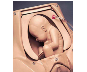 通过给下充气垫充气,胎儿可被抬高至相应位置。给上充气垫充气, 模拟了妊娠第9个月时腹部的典型硬度。胎儿,带有可触摸感觉的卤门、 脊柱、肩膀、肘和膝,可摆放成正常体位、臀位和横位,并保持在两气垫之间。